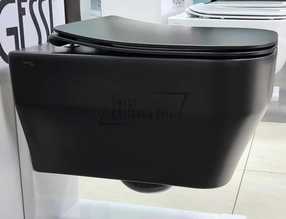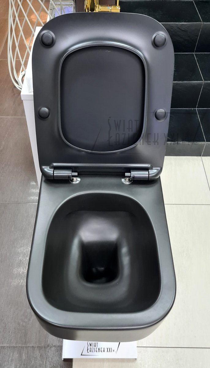 Olympia Ceramica Synthesis Miska bezrantowa 52x36 z deską wolnoopadającą slim czarny mat SYN1202R23+C9SY23
