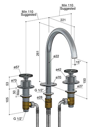 Wysokość wylewki: 150 mm