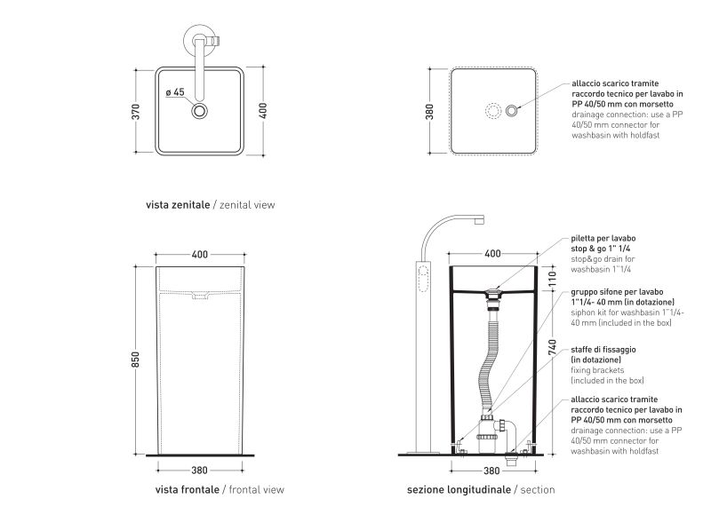 w zestawie mocowania do podłogi oraz syfon (FMT/SIF)