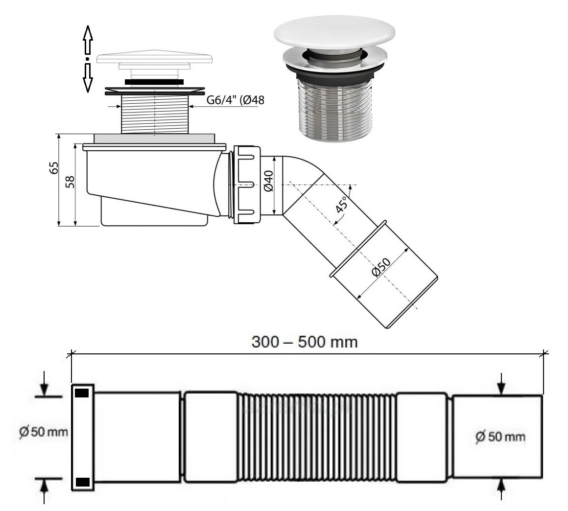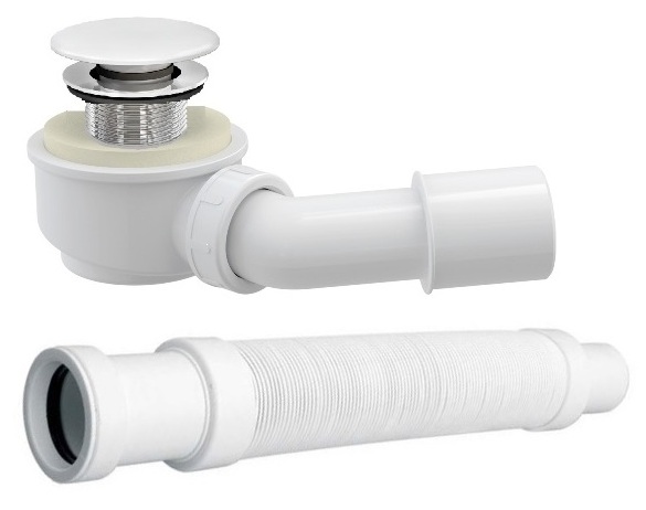 Clearwater Syfon wannowy z korkiem klik-klak pokrywa biały połysk K122WG