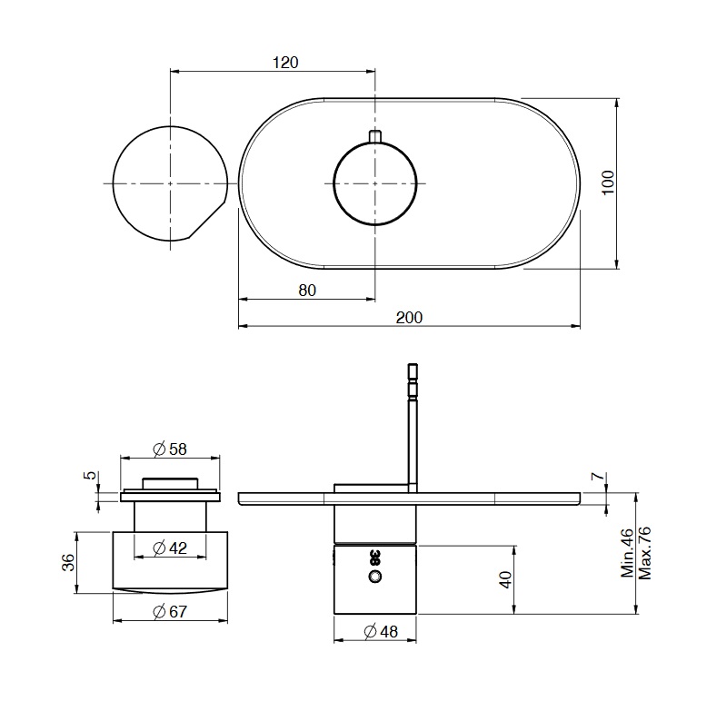 wysięg uchwytu: 46 - 76 mm