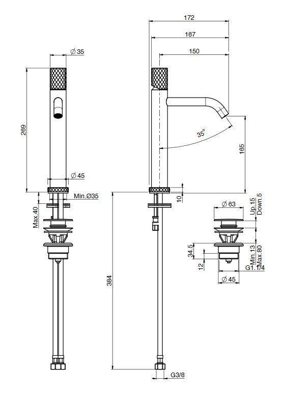 wysokość wylewki: 165 mm