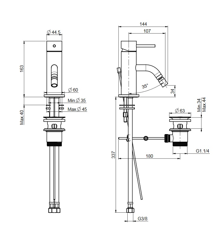 wysokość wylewki: 34 mm