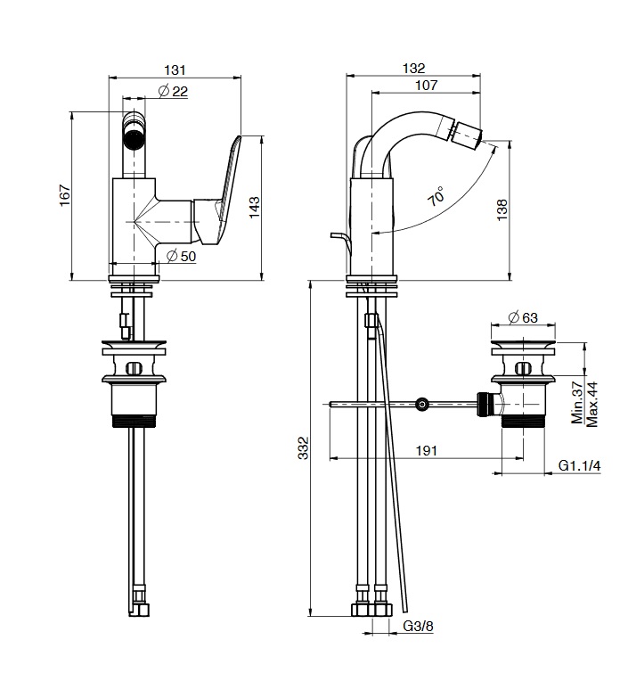 Carlo Frattini Spot Bateria bidetowa jednouchwytowa z korkiem automatycznym Chrom F3012CR