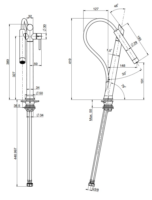 Carlo Frattini Galileo Bateria kuchenna z wyciąganą wylewką Chrom F7050CR