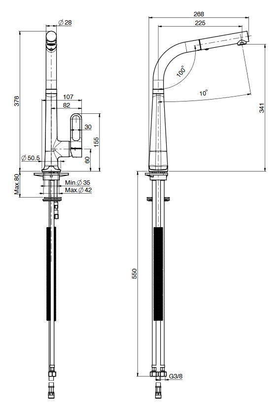 2 elastyczne węże przyłączeniowe 370 mmWymiary: