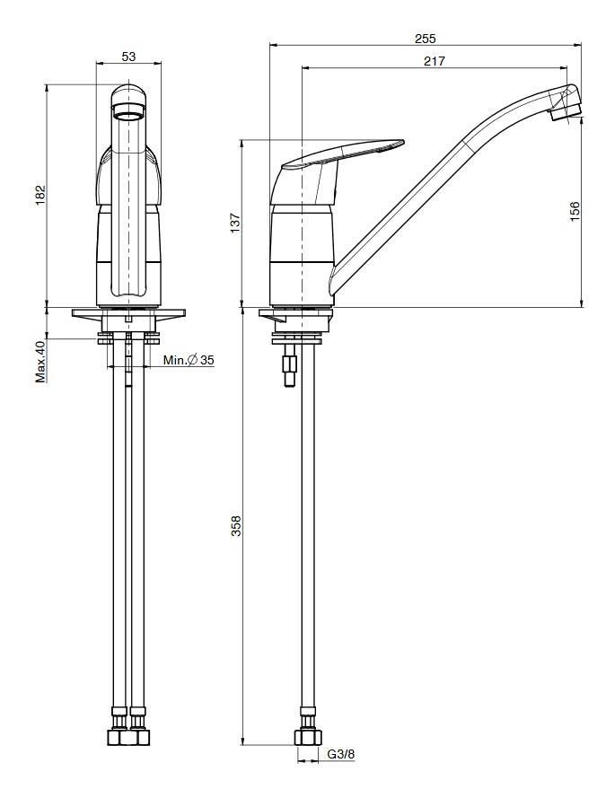 2 elastyczne węże przyłączeniowe 370 mmobrotowa wylewka