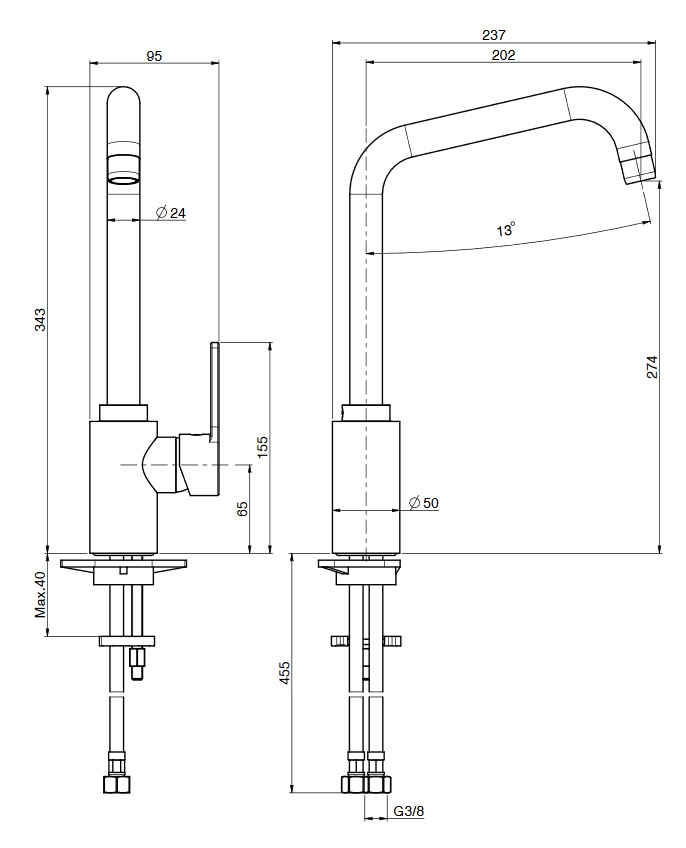 2 elastyczne węże przyłączeniowe 370 mmobrotowa wylewka