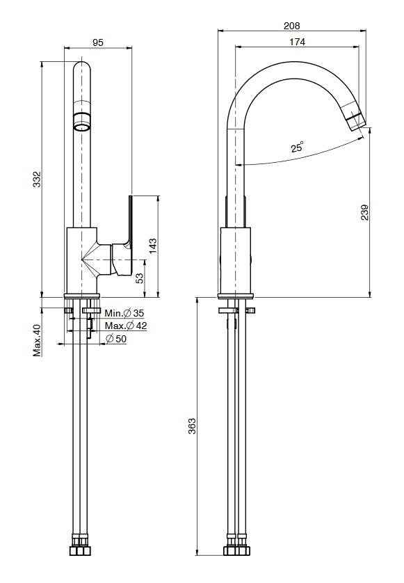 2 elastyczne węże przyłączeniowe 370 mmobrotowa wylewka