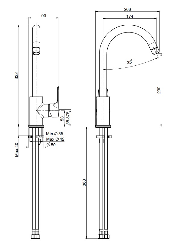 2 elastyczne węże przyłączeniowe 370 mmobrotowa wylewka