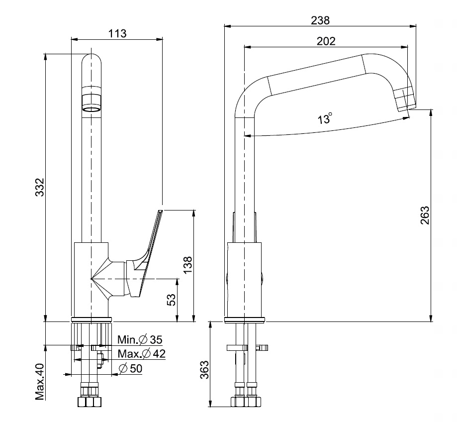 wysokość wylewki: 263 mm