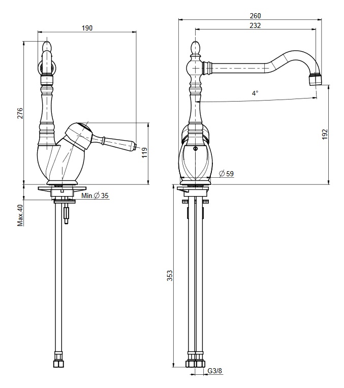 Carlo Frattini Bell Bateria kuchenna z ruchomą wylewką Chrom F3367CR