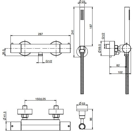 Carlo Frattini Bateria natryskowa termostatyczna ścienna z zestawem natryskowym Chrom F4275CR