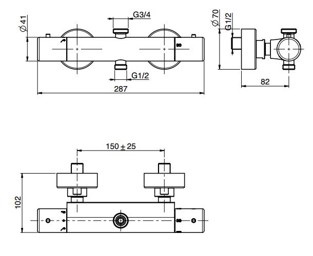 Carlo Frattini Bateria natryskowa termostatyczna ścienna bez zestawu natryskowego Chrom F4285/1CR