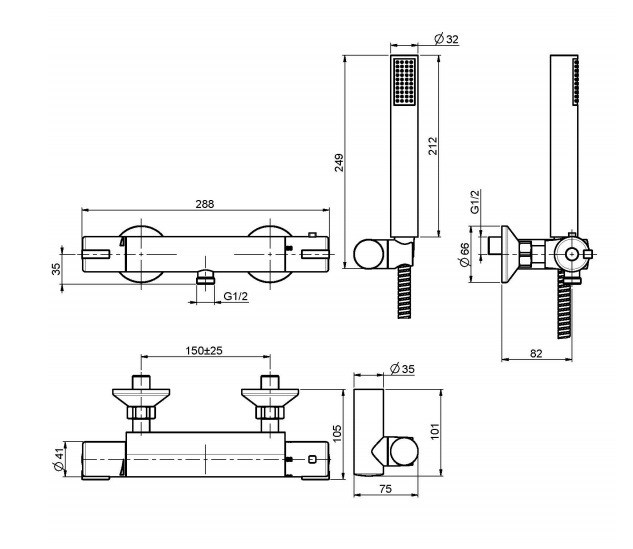 Carlo Frattini Bateria natryskowa termostatyczna ścienna z zestawem natryskowym Chrom F4095CR