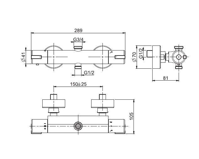 Carlo Frattini Bateria natryskowa termostatyczna ścienna bez zestawu natryskowego Chrom F4085/1CR
