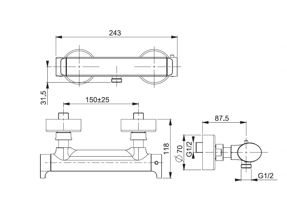 Carlo Frattini Bateria natryskowa termostatyczna ścienna bez zestawu natryskowego Chrom F4225/1CR