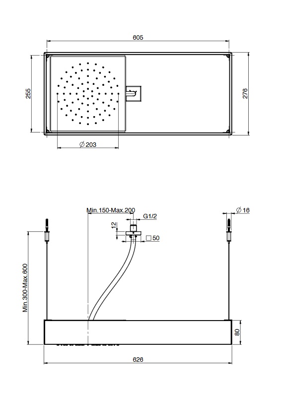 Carlo Frattini MooveCeiling Deszczownica sufitowa z ramką ze Szkła hartowanego F2993VTCR
