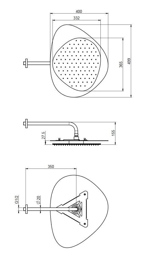 ramie ścienne deszczownicy 350 - 1/2 ”