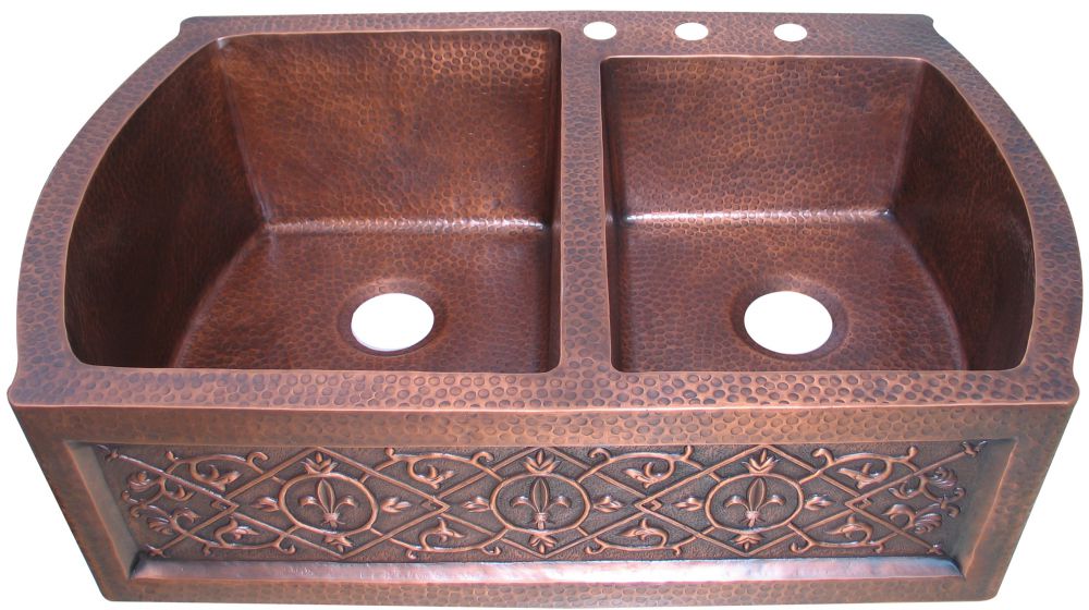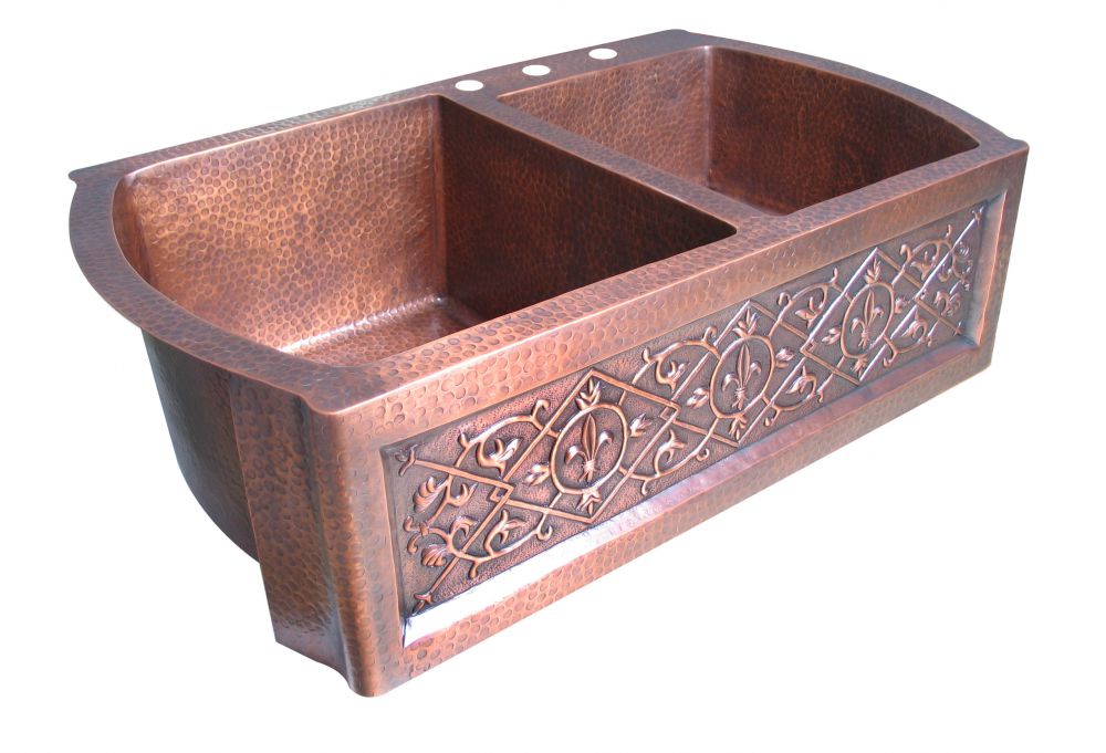 Zlew kuchenny 2-komorowy Retro Cobre miedziany młotkowany 91x66 cm SLZD-008