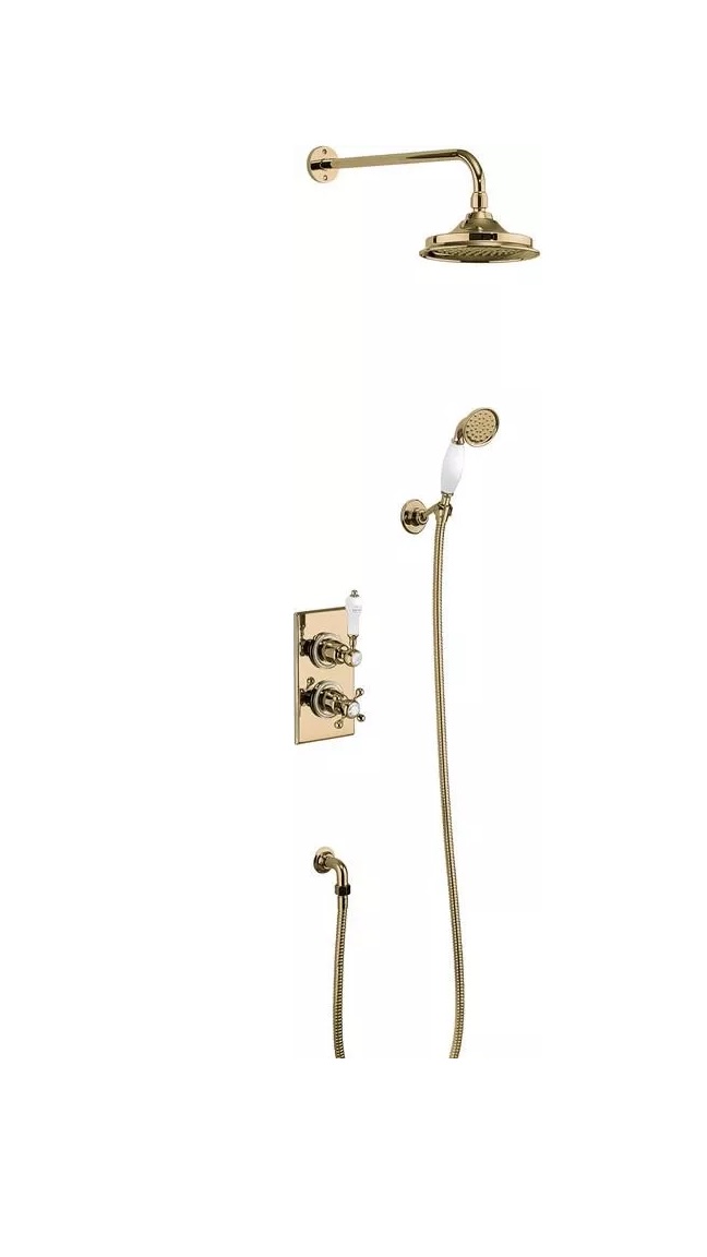 Burlington Trent Bateria natryskowa podtynkowa termostatyczna z deszczownicą 9" Gold TF2SGOLD+V17GOLD