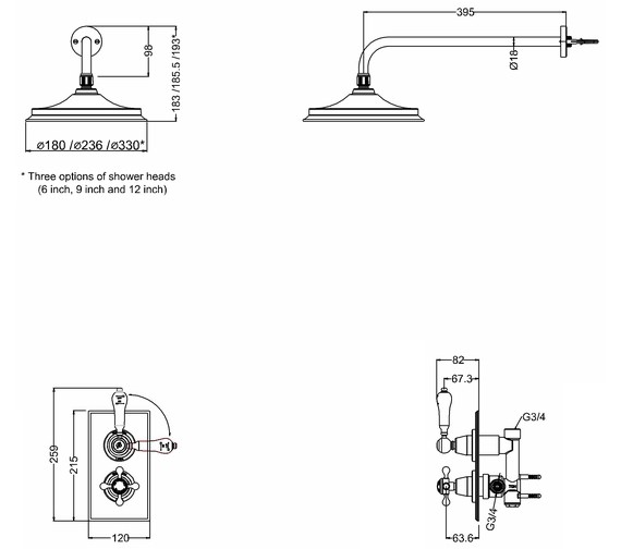 Burlington Trent Bateria natryskowa podtynkowa termostatyczna z deszczownicą 9" Gold TF1SGOLD+V17GOLD