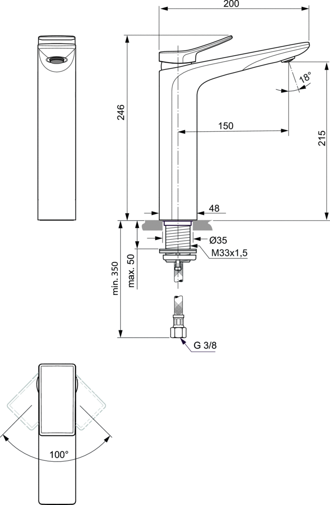 Ideal Standard Conca Bateria umywalkowa wysoka jednouchwytowa bez korka Gold BC758A2