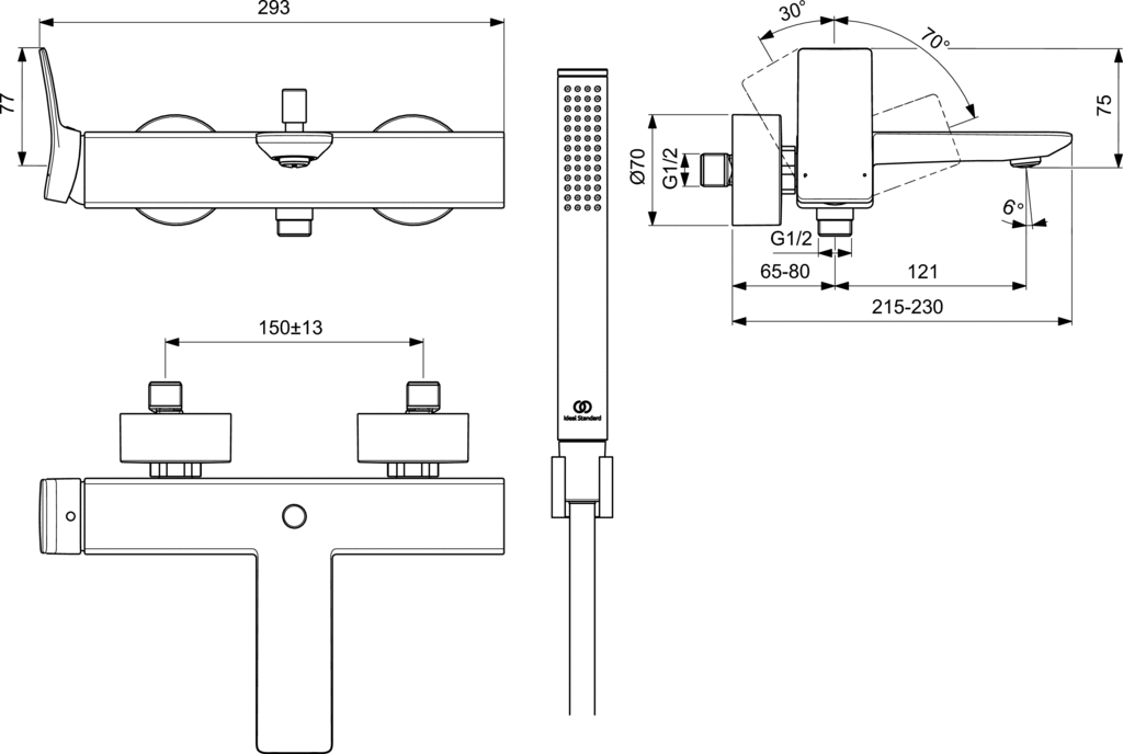 Ideal Standard Conca Bateria wannowo-natryskowa ścienna z zestawem prysznicowym Nikiel BC763GN