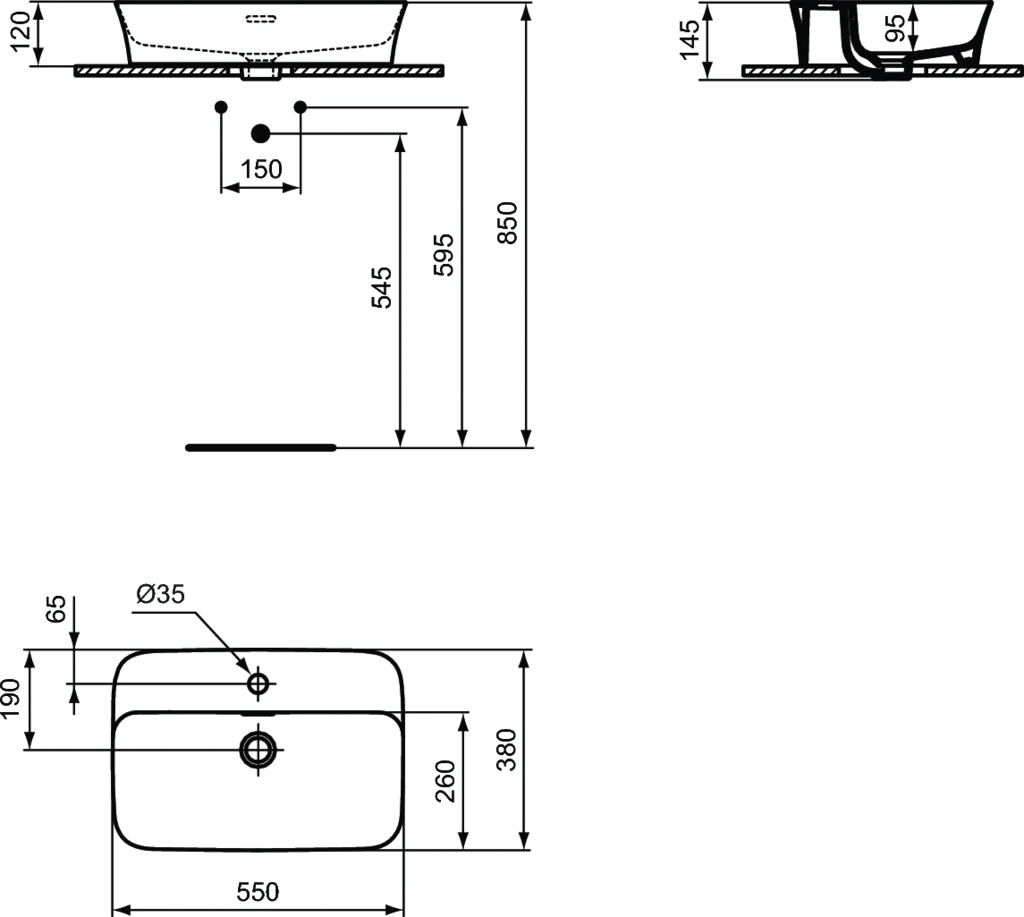 Ideal Standard Ipalyss Umywalka nablatowa 550x380 mm z przelewem Ciemnoszary E2077V5