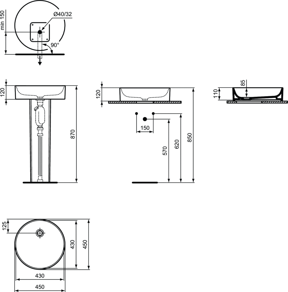 Postumentem do instalacji z umywalką okrągłą w wersji wolnostojącej,
