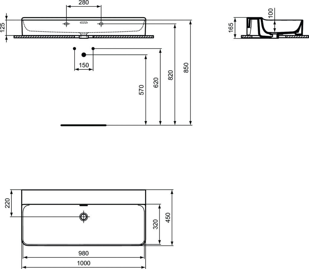 Ideal Standard Conca Umywalka ścienna 1000x450 mm bez otworu na baterię Biały T379901