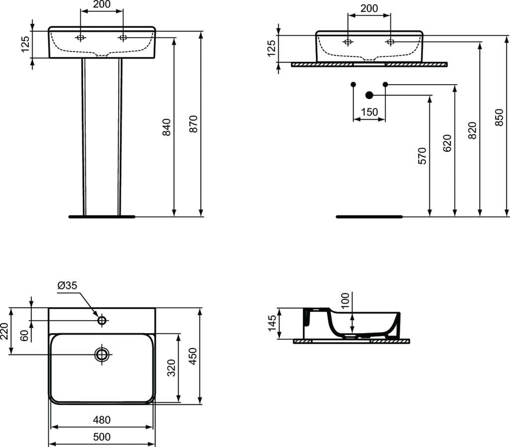 Umywalka mocowana do ściany (szlifowana od spodu)