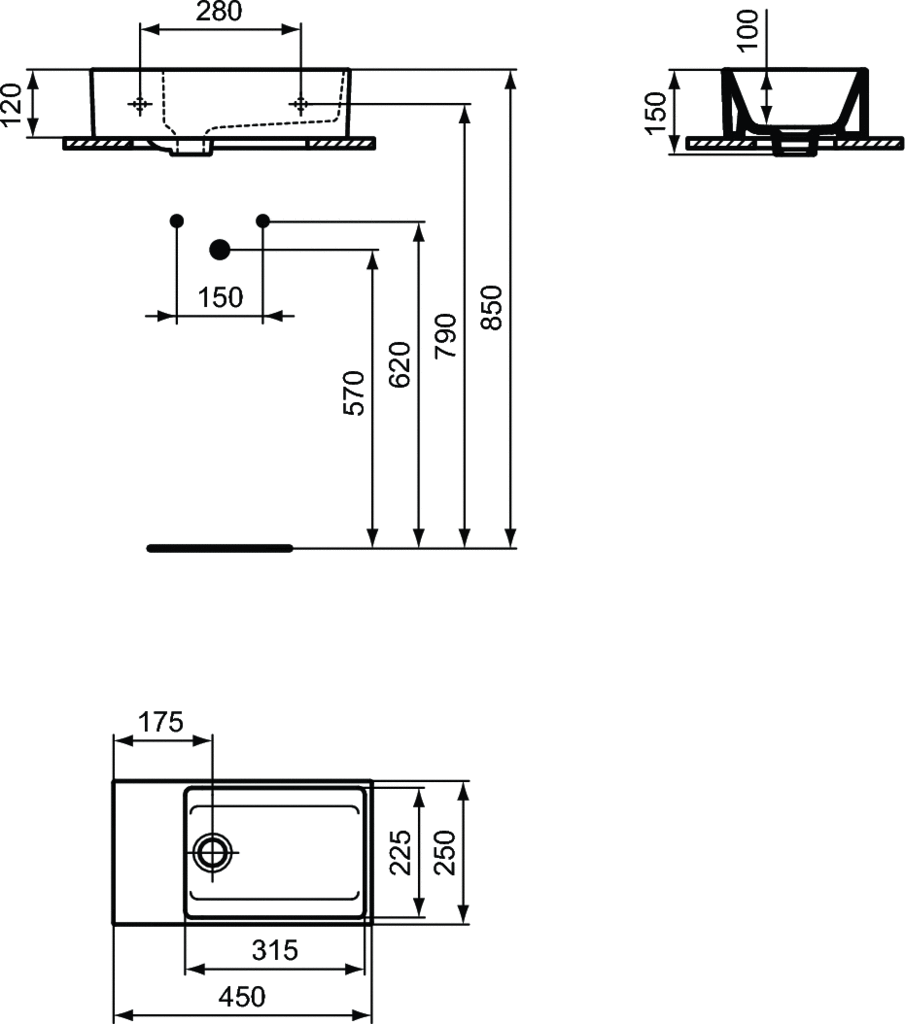 Ideal Standard Extra Umywalka ścienna 450x250 mm bez otworu na baterię, Lewa Biały T391901