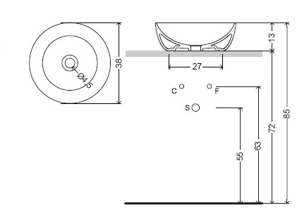 NIC Design Ovvio Umywalka nablatowa Ø38 cm biały połysk 001446.001