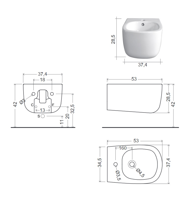 NIC Design Ovvio Bidet wiszący biały połysk 004434.001