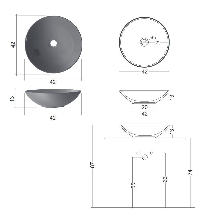 NIC Design Ciotole Umywalka nablatowa Ø42 cm Biały 001033.001