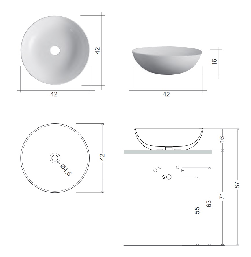 NIC Design Ciotole Umywalka nablatowa Ø42 biały połysk 001715.001