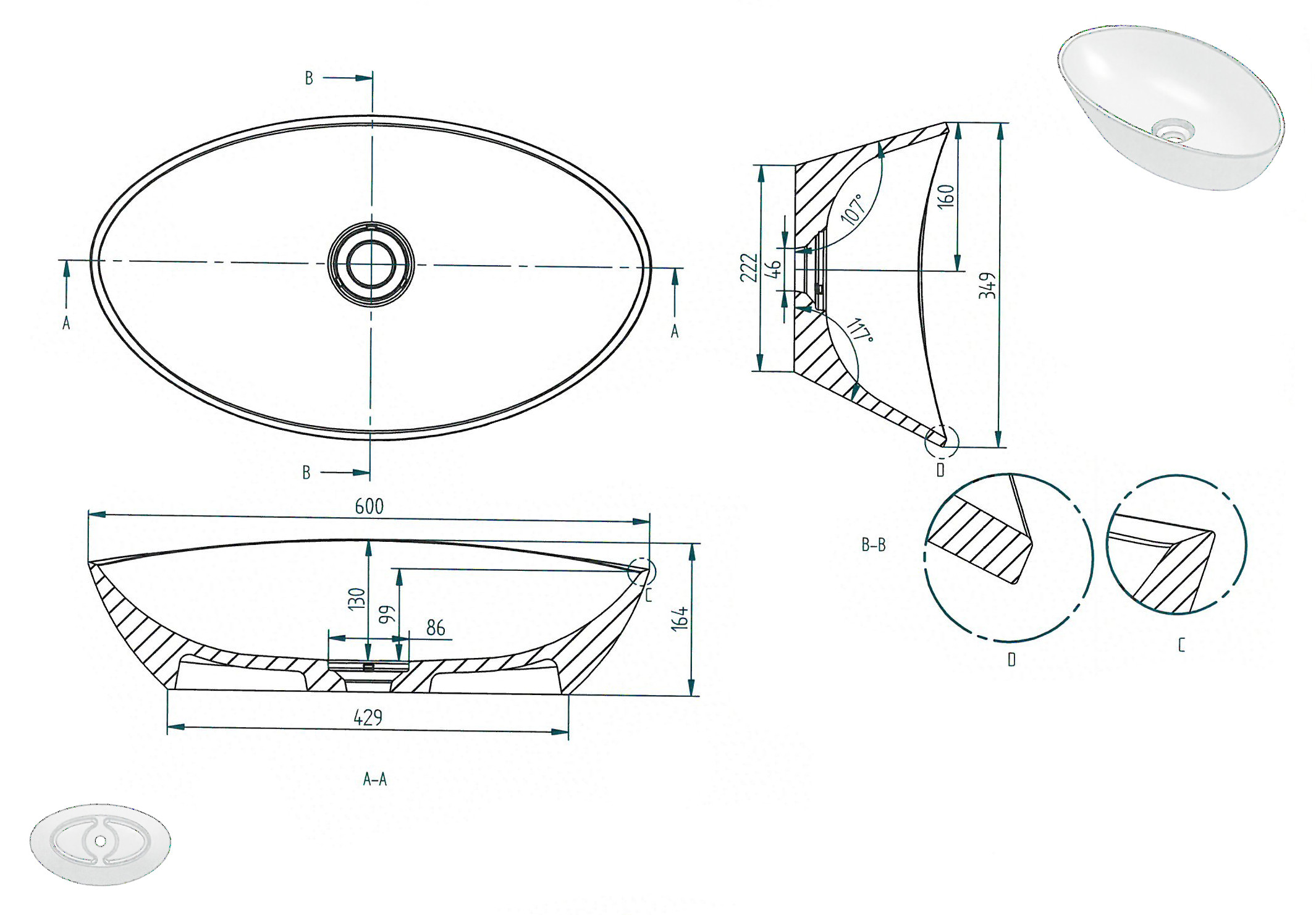 Cena dotyczy umywalki z osłoną odpływu w kolorze umywalki.