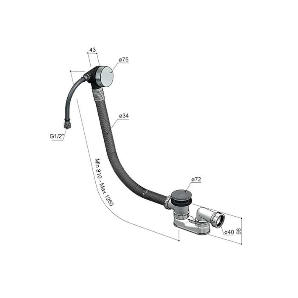 Hotbath Archie Odpływ wannowy z przelewem Steel Brushed AR133.IX