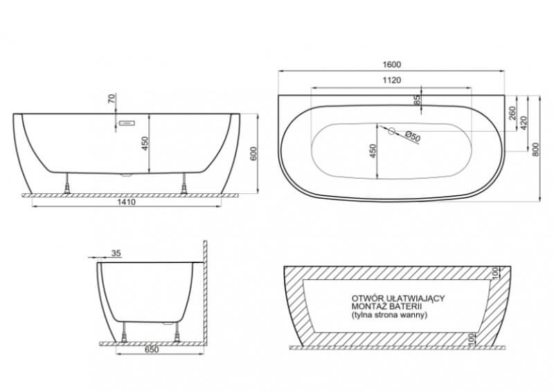 Polimat RISA Wanna wolnostojąca przyścienna 160x80 cm Słodki róż 00480