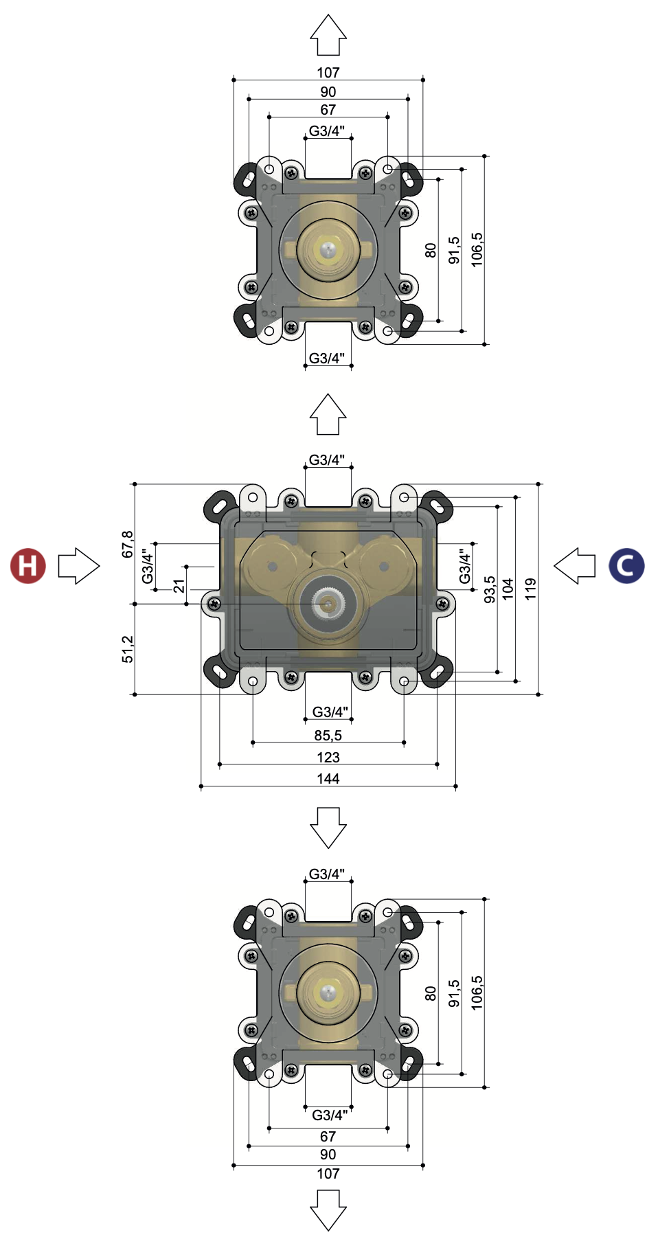 Hotbath Cobber Element podtynkowy do baterii natryskowej termostatycznej z 2 zaworami HB007