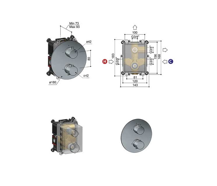 Głębokość montażu: 73 - 93 mm