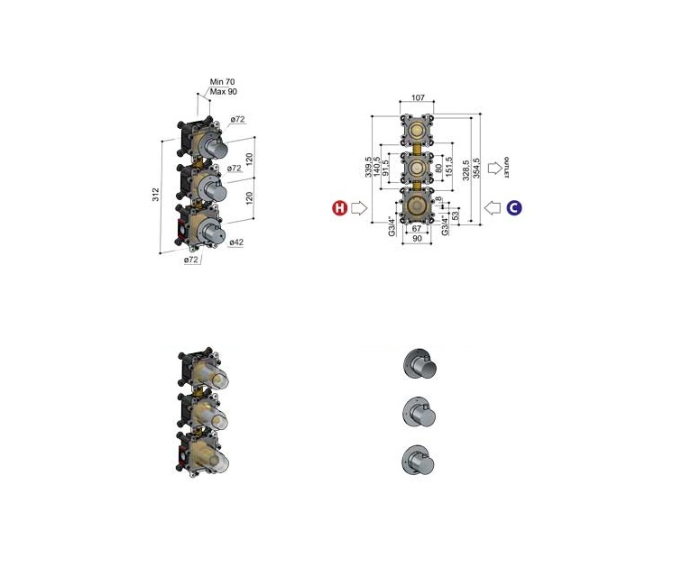Hotbath Cobber Bateria natryskowa termostatyczna podtynkowa z 2 zaworami element zewnętrzny Brushed brass CB7066.BB