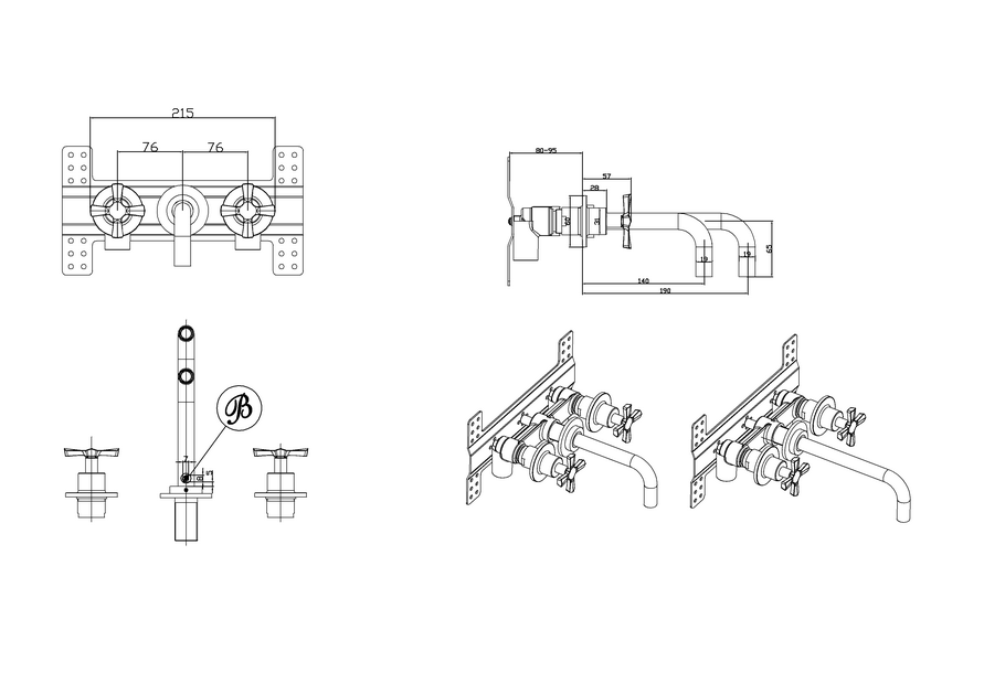 Burlington Riviera Bateria umywalkowa podtynkowa 140-190 mm złoty RSGOLD