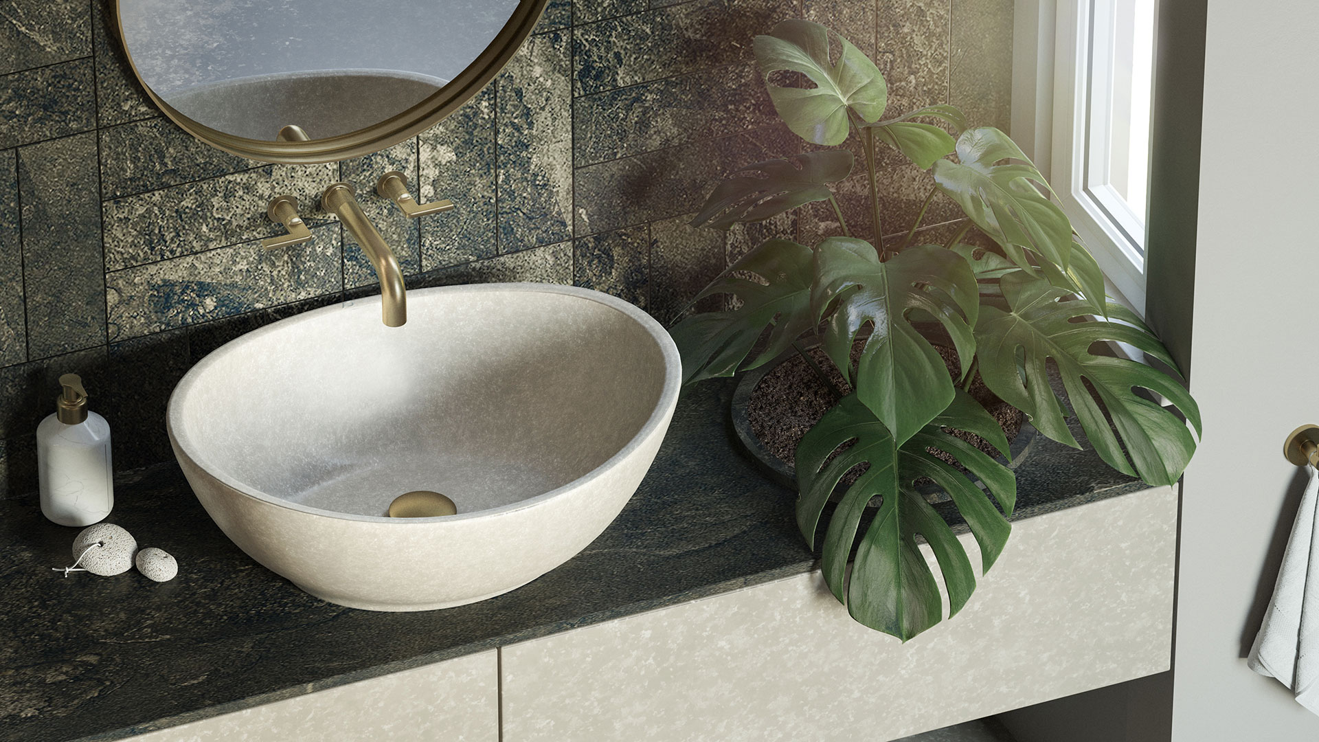 Alanad Kelud Umywalka kamienna owalna nablatowa 410x330 mm szary marmur KUN-001SZ