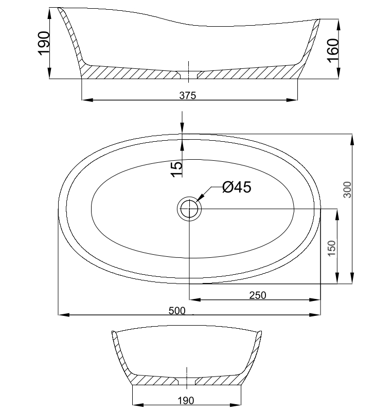 Hoesch Namur Lounge Umywalka stawiana 50x30 biały mat 4420.013