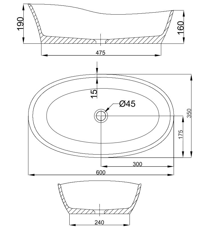 Hoesch Namur Lounge Umywalka stawiana 60x35 biały mat 4421.013