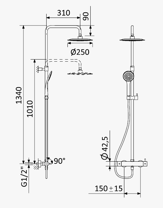 Bruma Lusitano Zestaw prysznicowy z deszczownicą Ø 250 i słuchawką prysznicową Sunrise 1072821SR/2