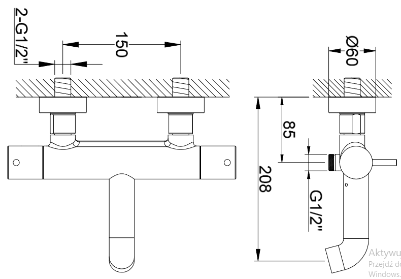 KOHLMAN Axel Bateria wannowo-prysznicowa termostatyczna natynkowa chrom QW710A