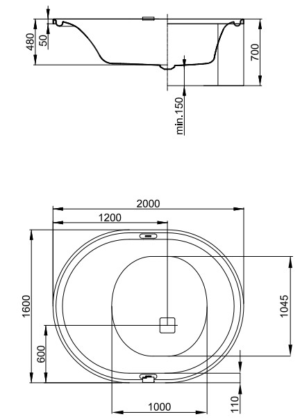 HOESCH Ergo+ Wanna akrylowa owalna - do zabudowy 200x160 cm biała 6437.010305